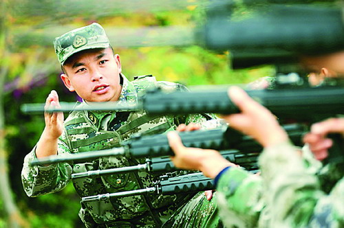在我们身边总有一些人,在平凡的岗位上作出不凡的业绩,展现出别样的风采。近日,新闻媒体报道了南京军区某部上士班长何祥美的事迹,让我们看到了中国士兵的时代形象。他陆上能特战狙击,海上能操舟潜水,天上能飞行跳伞,是一位地上、海上、天上驰骋,指挥、战斗、教学内行,体能、技能、智能拔尖的全能士兵。有人称他为“三栖精兵”,有人说他是“中国枪王”,看过他军事表演的人都说:真了不起!