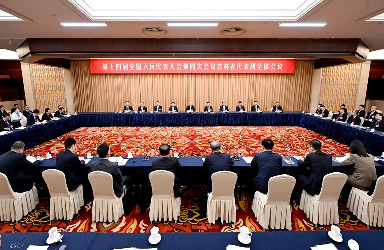 3月3日,出席十四届全国人大四次会议的吉林省代表团在驻地召开全体会议