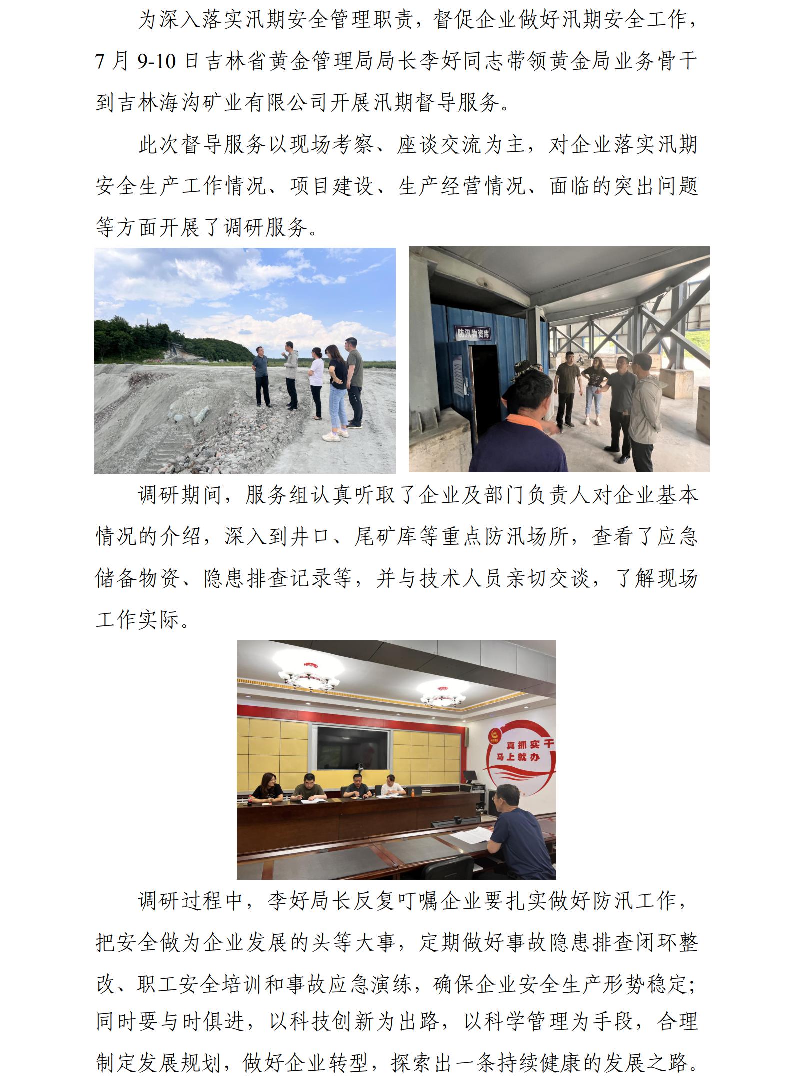 省黄金管理局局长李好指导企业汛期安全生产工作