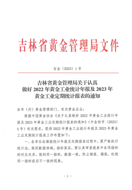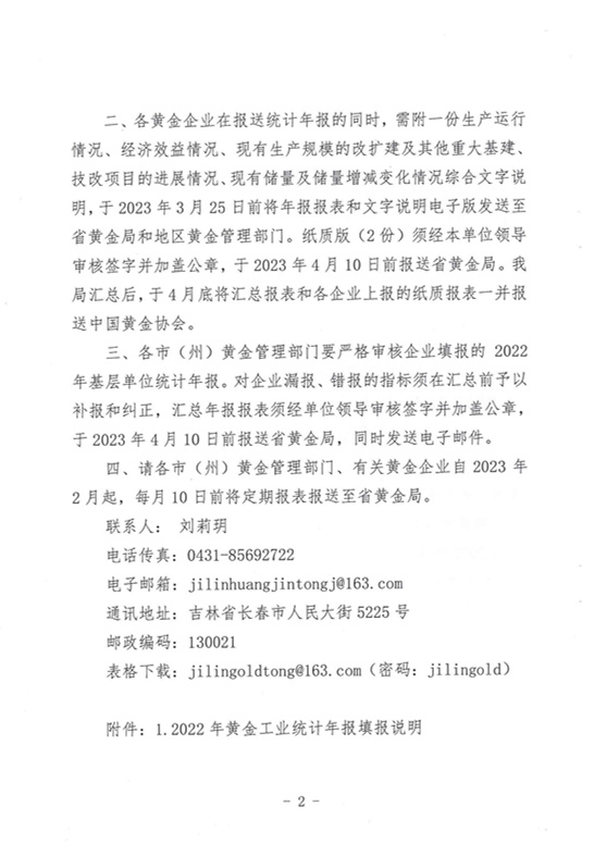 关于认真做好2022年黄金工业统计年报及2023年黄金工业定期统计报表的通知