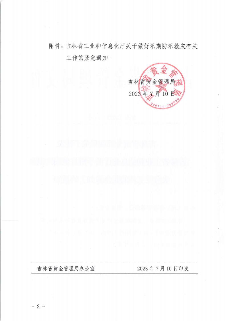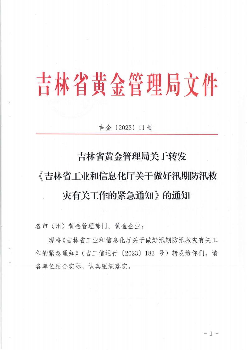 吉林省黄金管理局关于转发《吉林省工业和信息化厅关于做好汛期防汛救灾有关工作的紧急通知》的通知