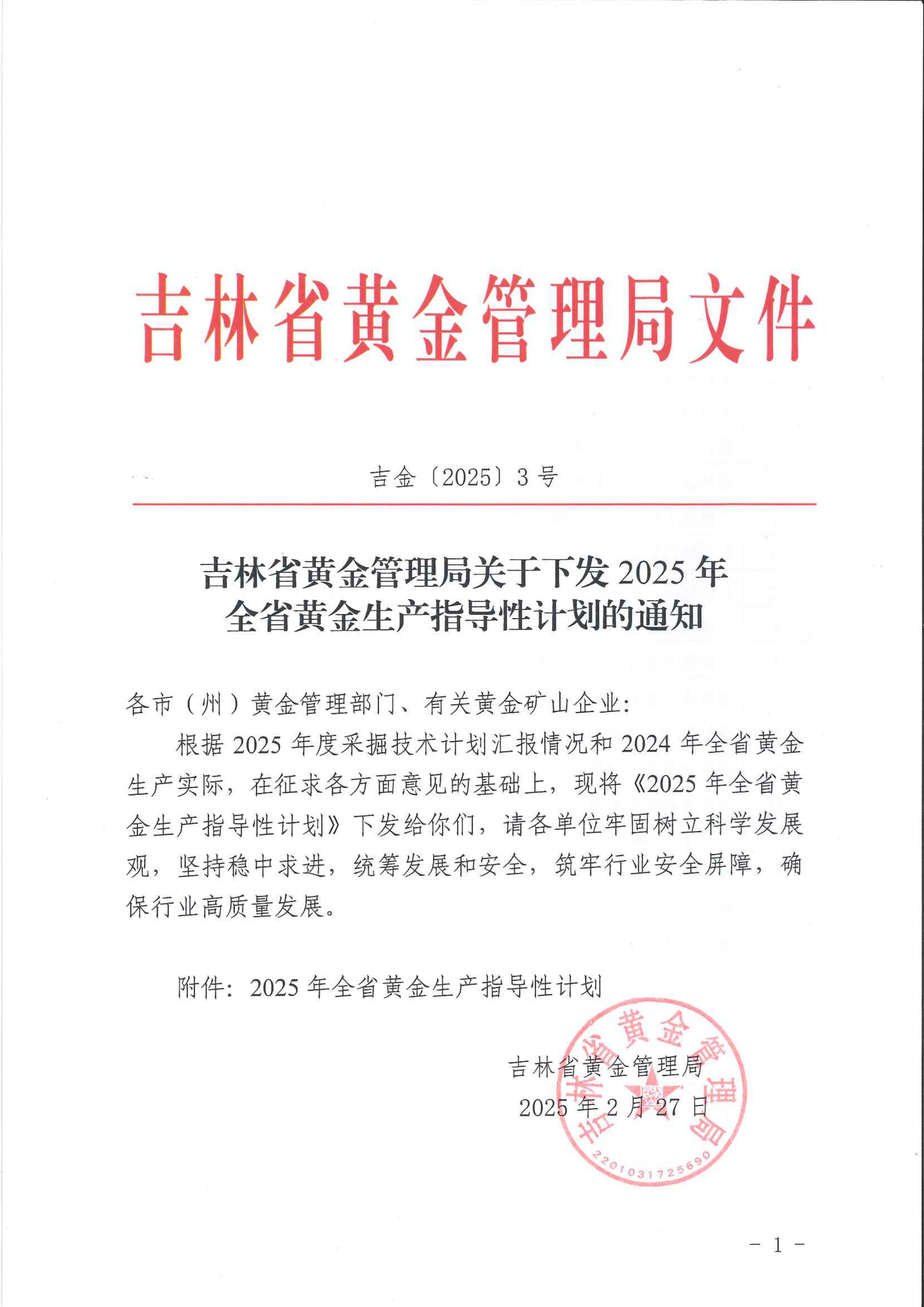 关于下发2025年全省黄金生产指导性计划的通知