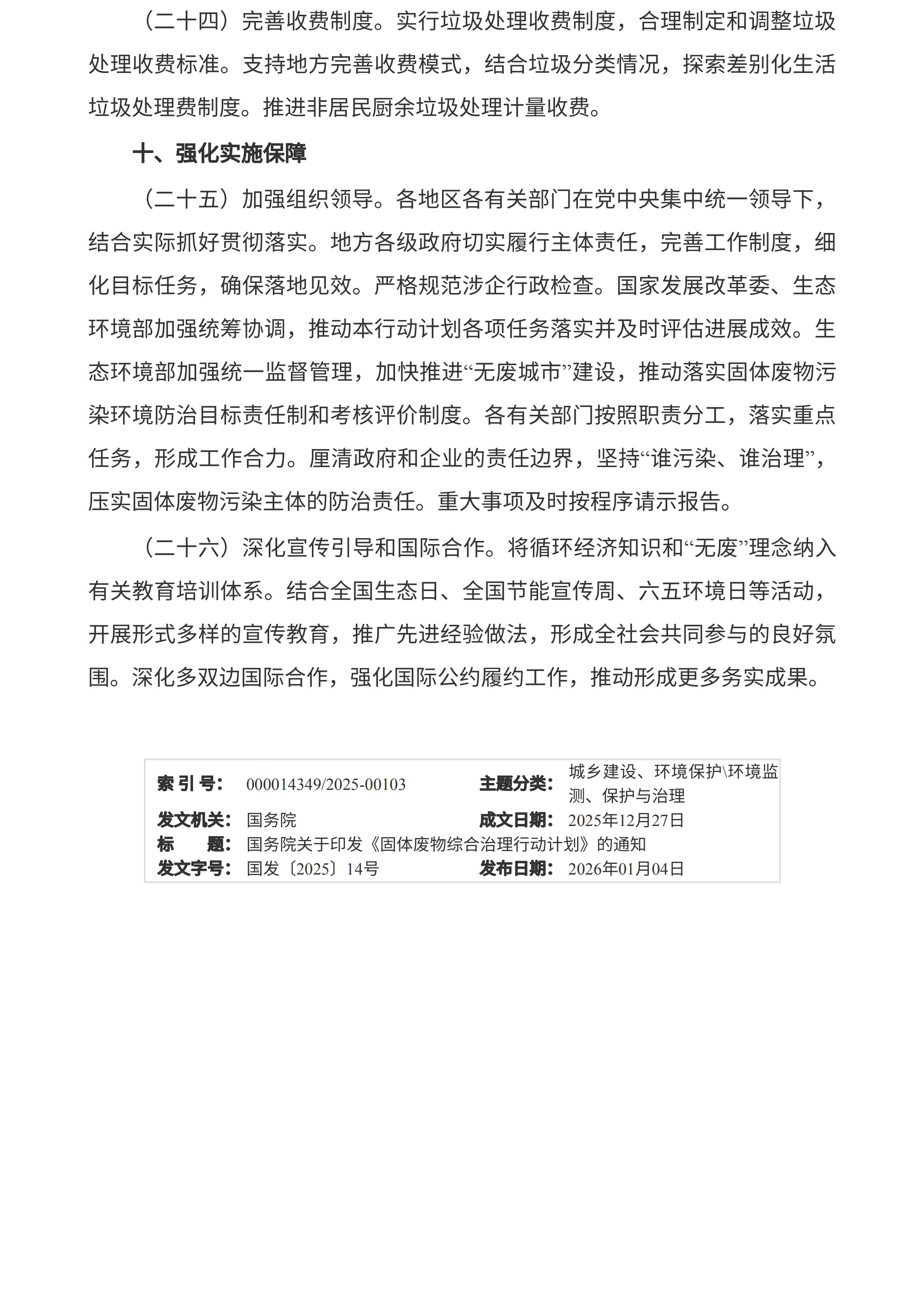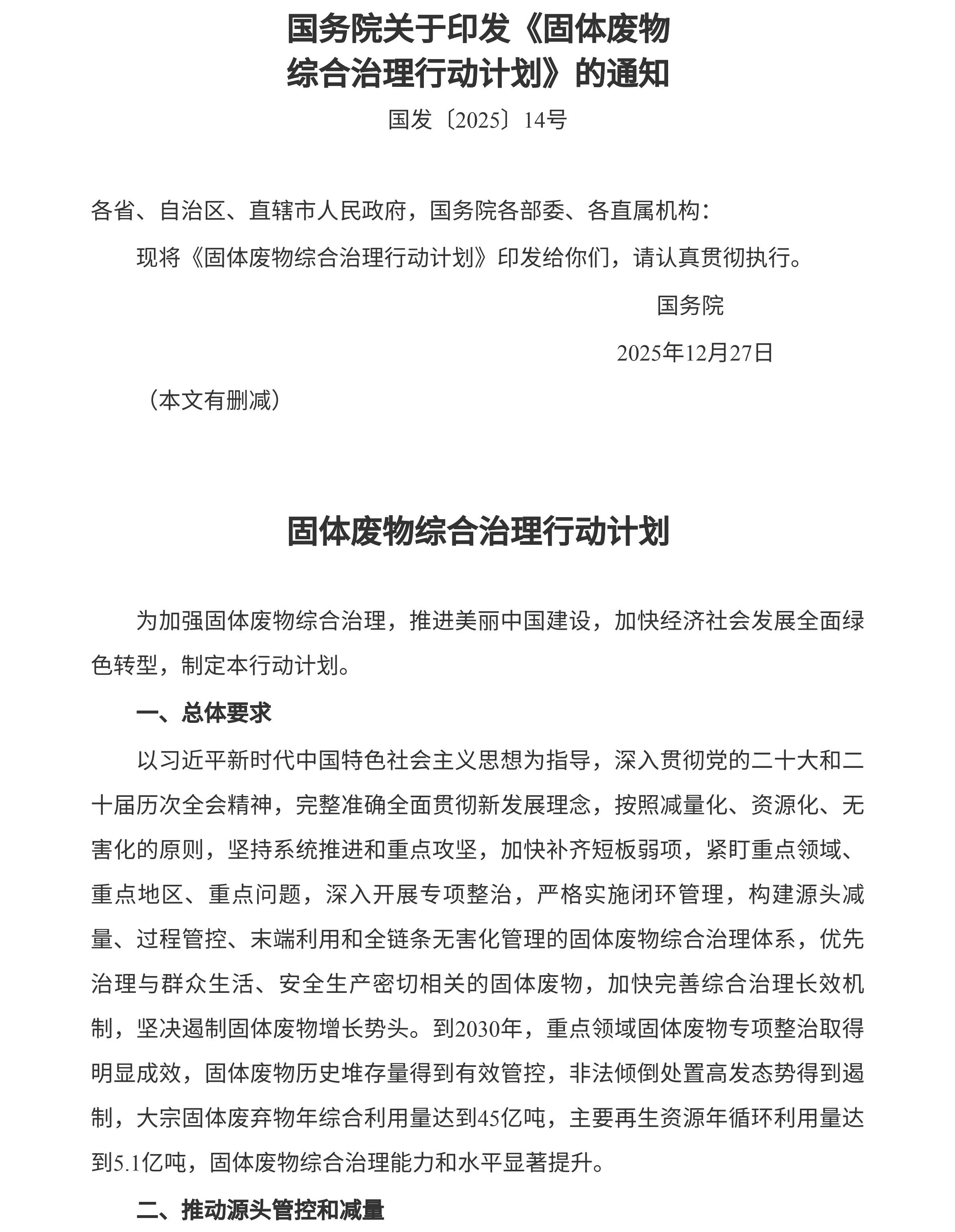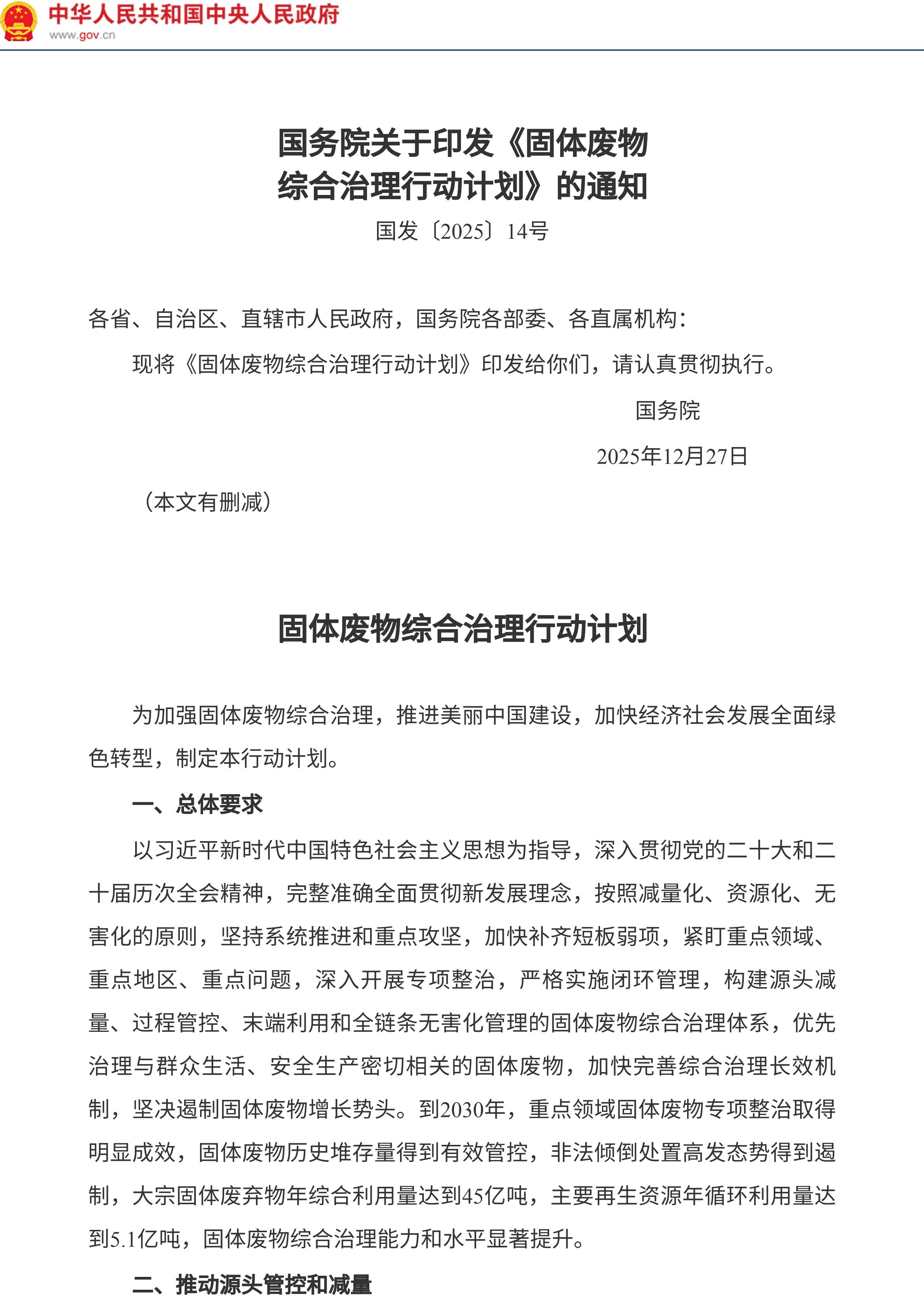 国务院关于印发《固体废物综合治理行动计划》的通知