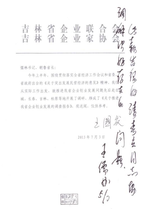 7月5日,王儒林书记百忙中对我会上报的《关于推进我省企业创业发展的调查报告》做出重要批示:“此报告很好,请春立同志协调解决好存在的问题”。