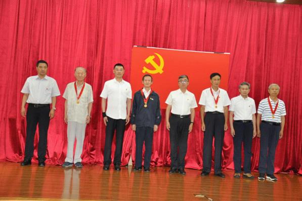 今年全厅共有10名老党员符合“光荣在党50年”纪念章颁发条件。除异地居住或身体原因不能参会外,共有4名老党员上台领取纪念章,厅领导现场颁发纪念章并与他们合影留念。