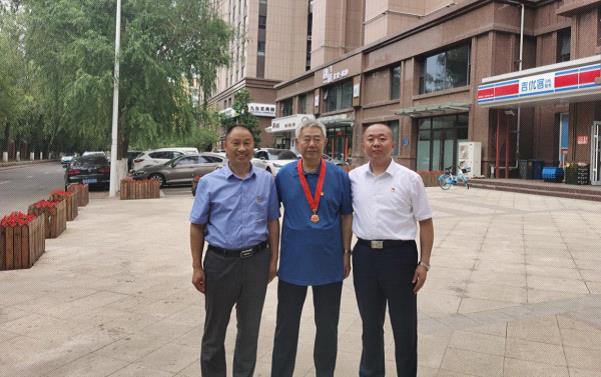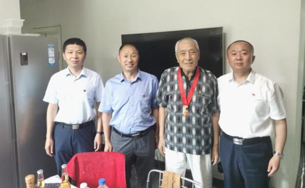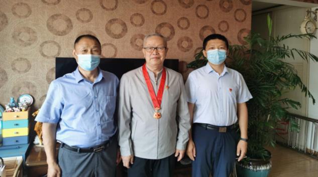 30日上午老干部党总支书记侯照才与工作人员王雪松、孙铁柱上门为在市内居住的4名老党员颁发“光荣在党50年”纪念章。