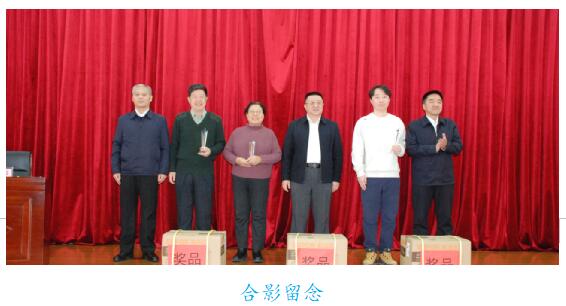 会上,厅领导对被评为省级“六好”党支部的退休第五党支部、被评为吉林省离退休干部发挥作用“银发先锋岗”的尹继好、范益梅和牟伟3名同志、入选“全省银发人才”数据库的王树杞、范益梅、尹继好、牟伟和樊民安等5名同志表示祝贺,并为到会的尹继好、范益梅和樊民安的家属颁发奖杯和奖品,合影留念。