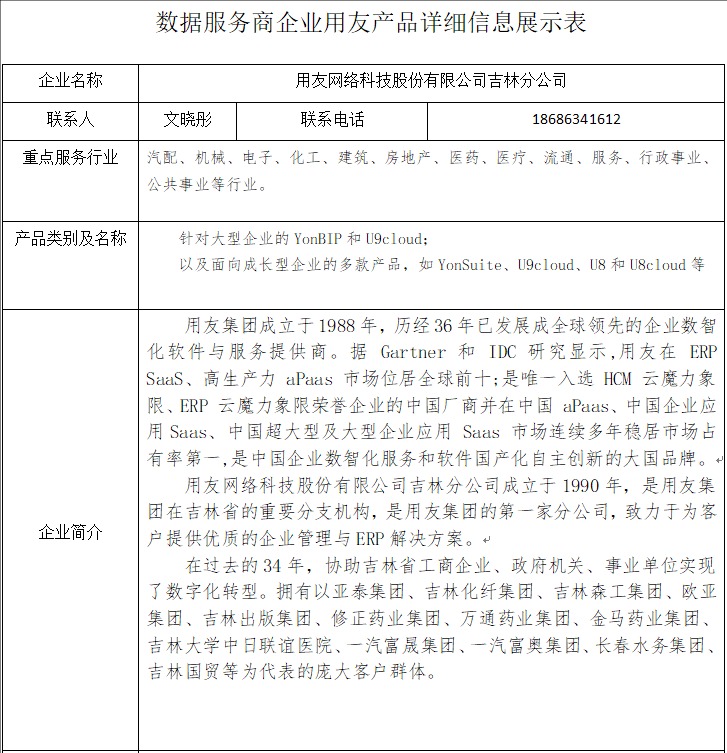 用友网络科技股份有限公司吉林分公司